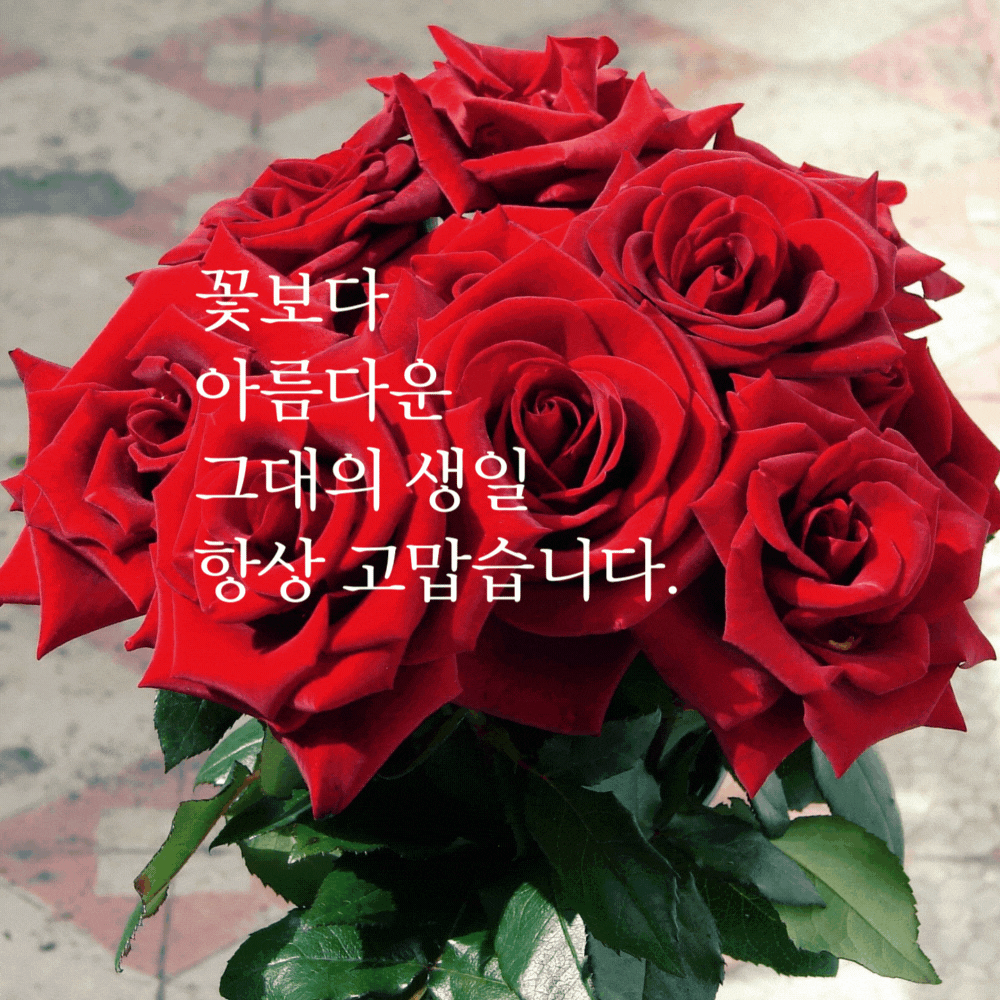 지난번 생일축하 이미지를 만들었는데 조금 허전한 거 같아서 한 번 더 만들어 보았습니다. 사실 생일축하 카드 같은 것을 만들 때 사진도 같이 넣으면 좋습니다. 이미지 편집 앱이 많으니 필요한 분들은 다운로드하여서 가볍게 수정해 보면 더 좋겠죠? 생일축하 꽃다발 이미지 파일은 개별 다운로드하면 됩니다. 압축을 해서 한 번에 올리니 용량 초과로 업로드가 안 되네요. 이번에는 움직이는 생일 축하 이미지로 만들었습니다.