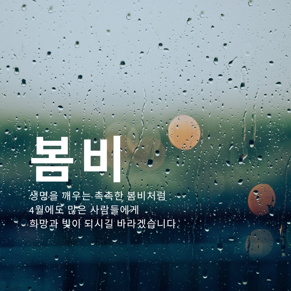 3. 생명을 깨우는 촉촉한 봄비처럼 4월에도 많은 사람들에게 희망과 빛이 되시길 바라겠습니다.