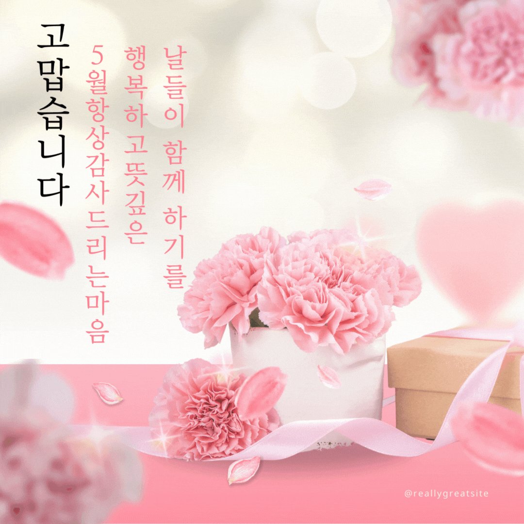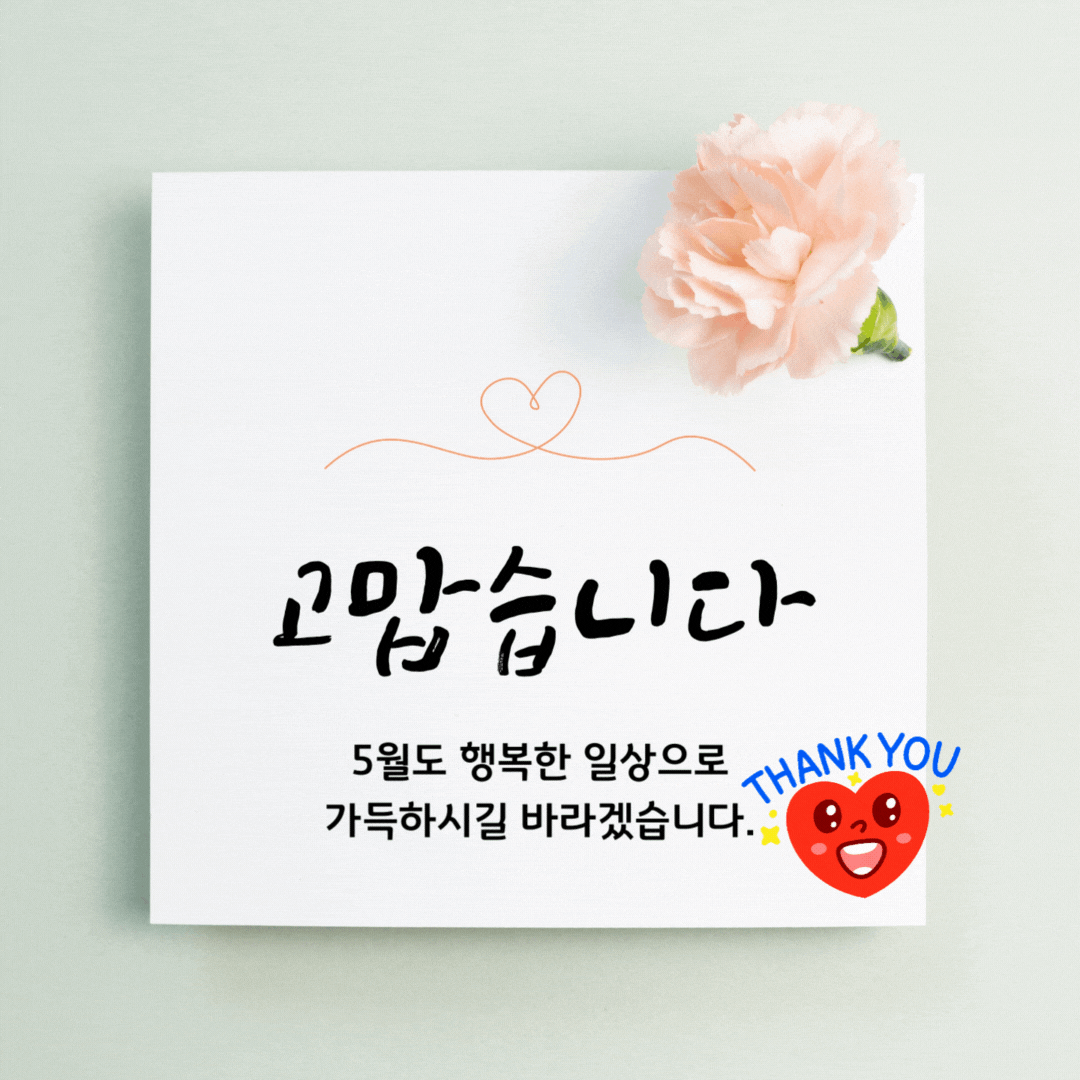 5. 감사의 달 5월. 5월은 감사의 달입니다. 평소 고마움을 전하지 못한 분들께 감사의 마음을 전달하세요. 5월만큼은 주변 분들을 챙길 수 있는 마음이 넉넉한 시간을 보내세요!
