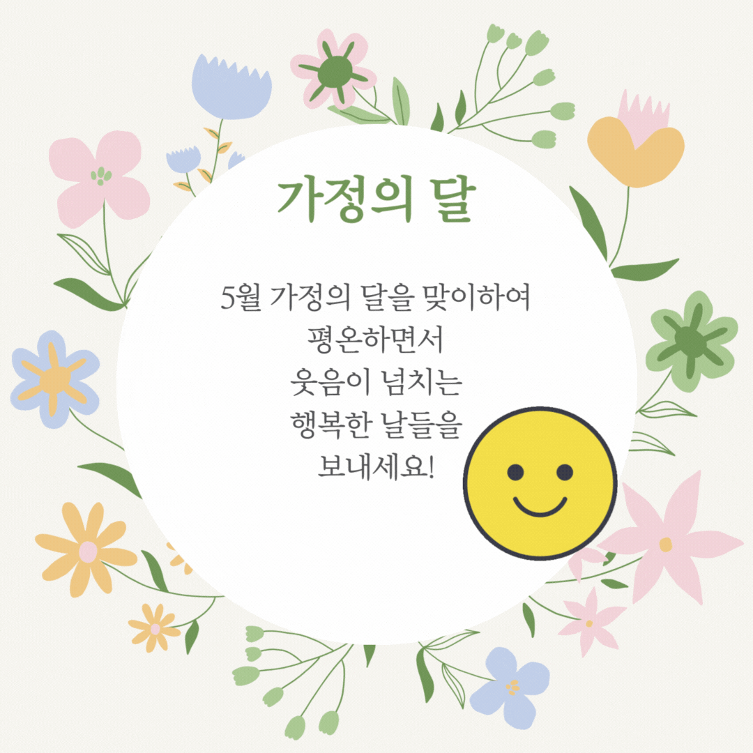 1. 5월 가정의 달을 맞이하여 평온하면서 웃음이 넘치는 행복한 날들을 보내세요!