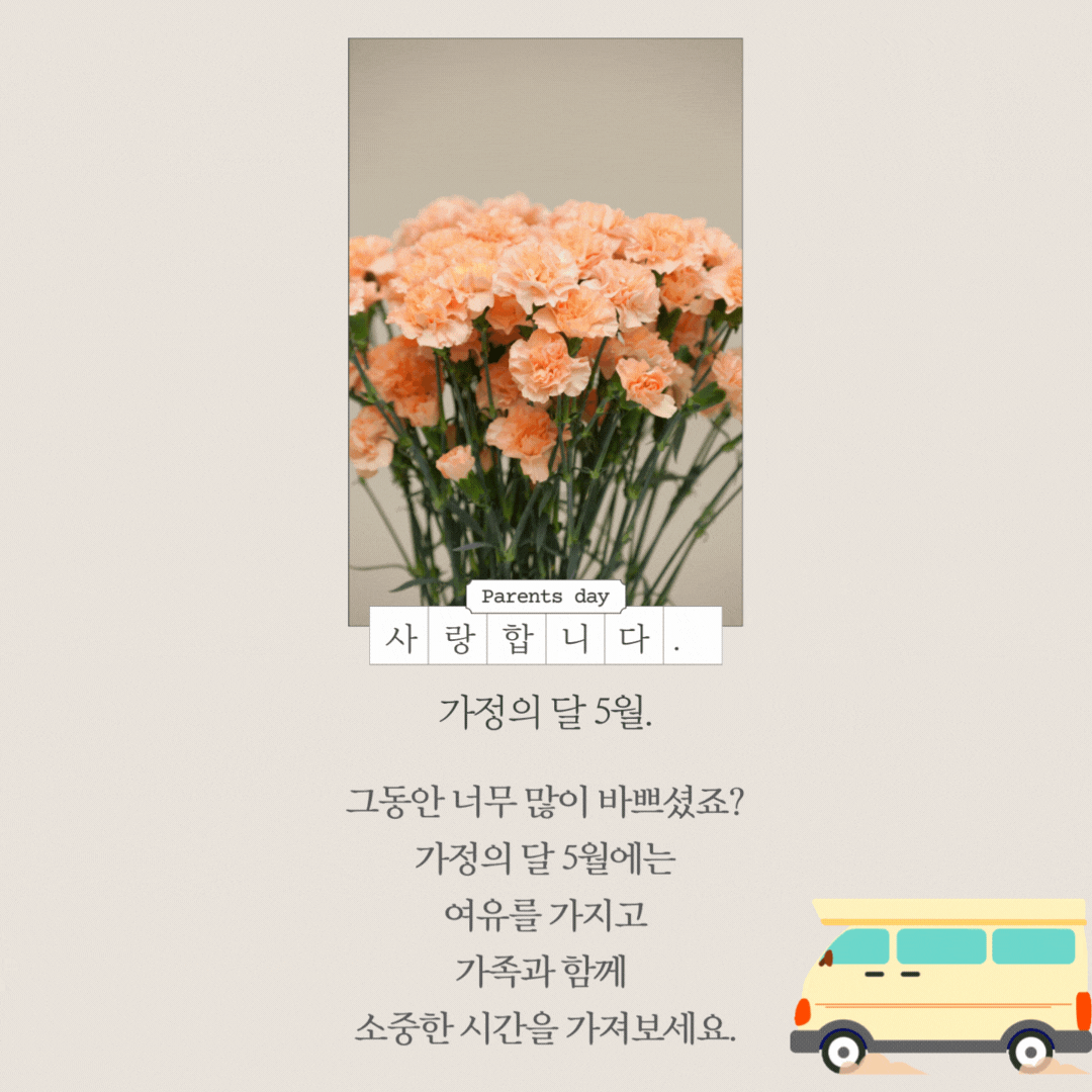 6. 가정의 달 5월. 그동안 너무 많이 바쁘셨죠? 가정의 달 5월에는 여유를 가지고 가족과 함께 소중한 시간을 가져보세요.