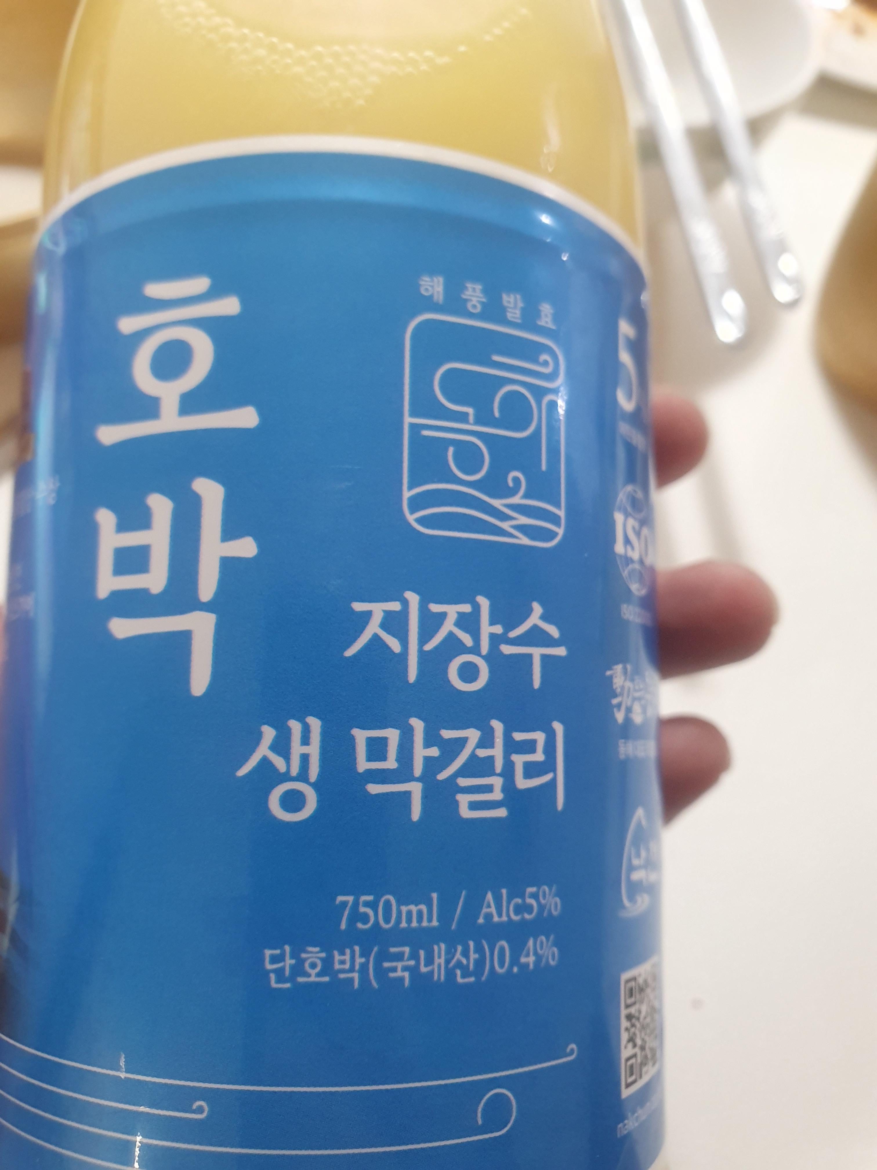 지장수라는 것은 황토럴 휘저어서 가라앉힌 물이라고 합니다. 물론 이 제품이 정말로 지장수인지는 모르겠지만...그나저나 단호박 막걸리 드셔보셨나요?