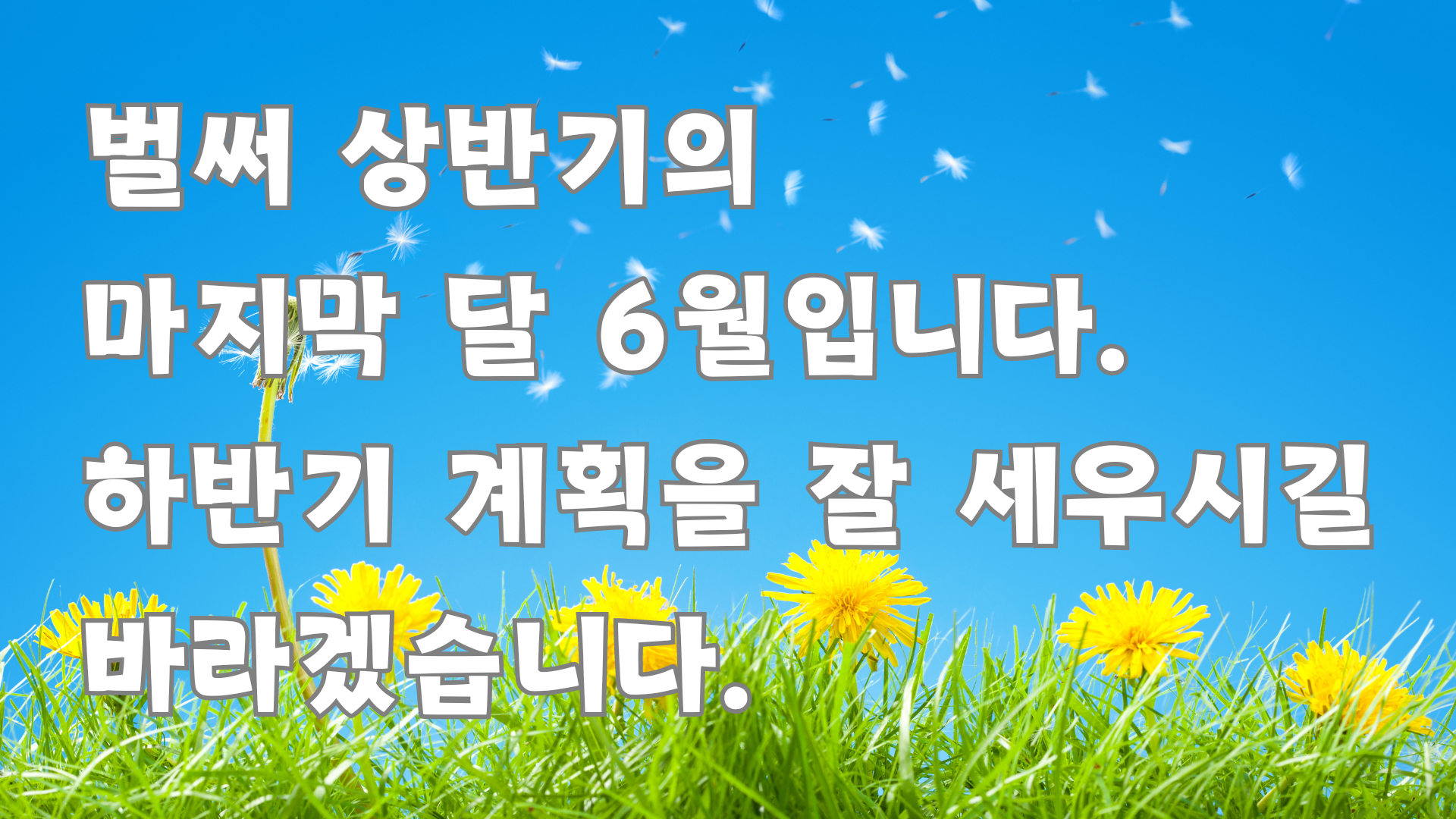8. 벌써 상반기의 마지막 달 6월입니다. 하반기 계획을 잘 세우시길 바라겠습니다.