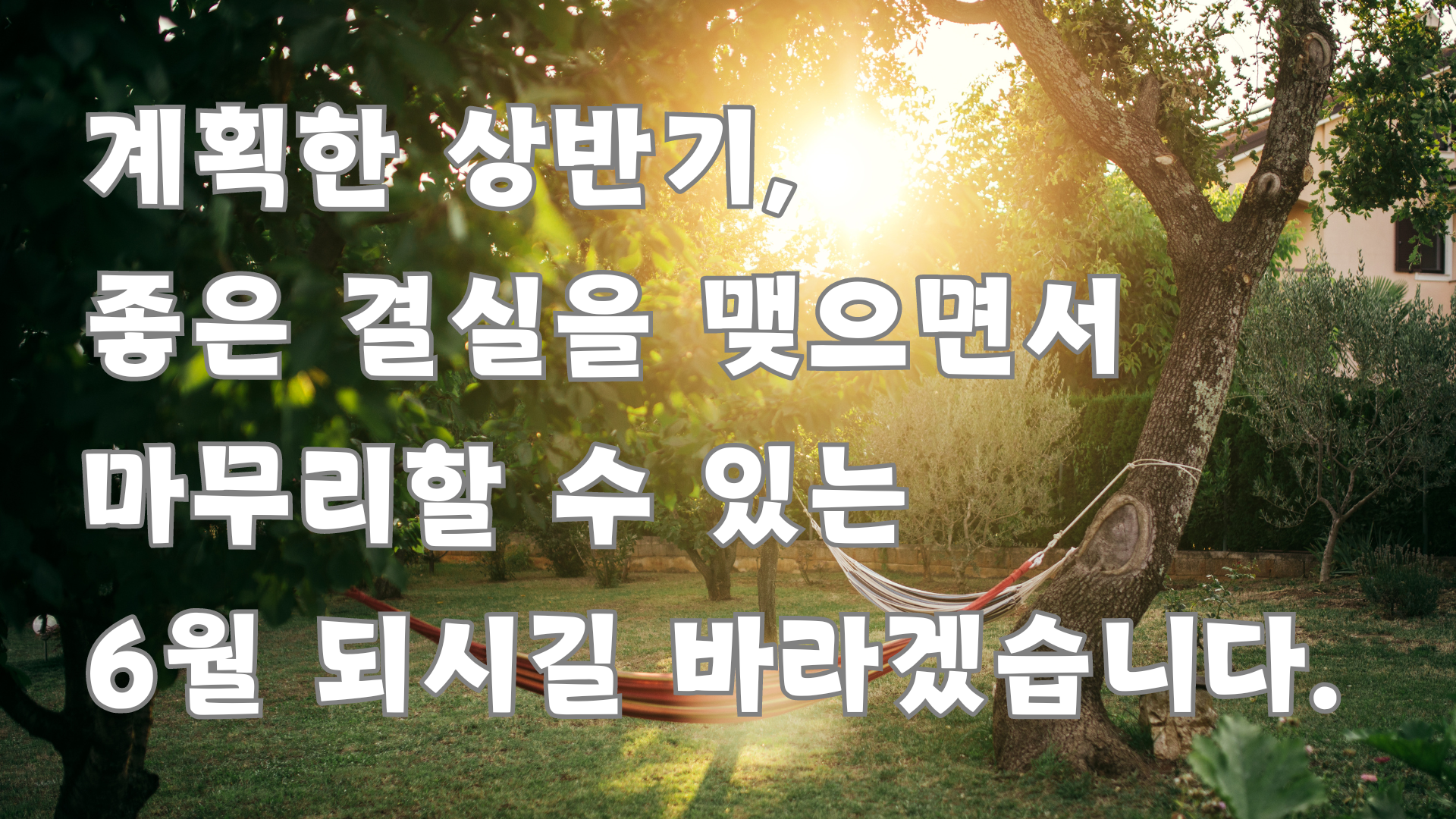 13. 계획한 상반기, 좋은 결실을 맺으면서 마무리할 수 있는 6월 되시길 바라겠습니다.