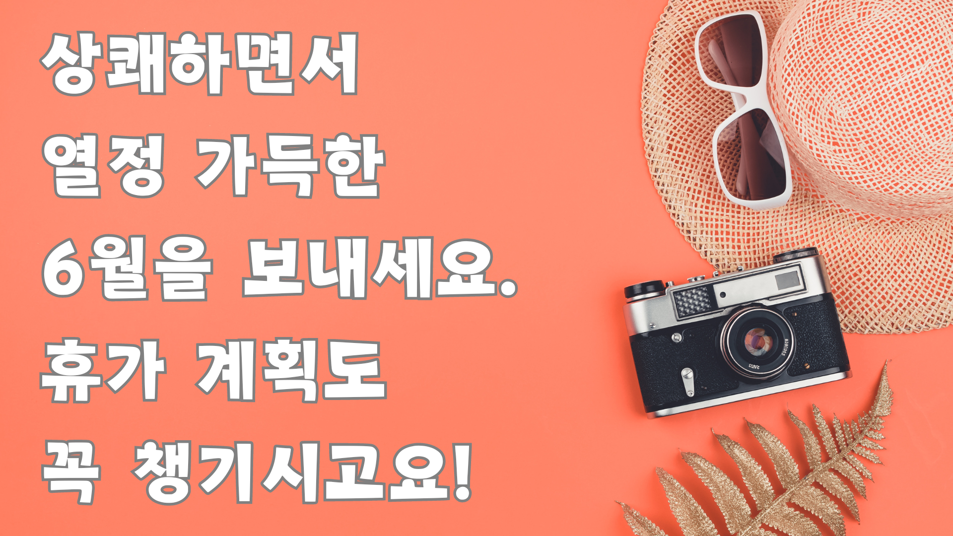 15. 상쾌하면서 열정 가득한 6월을 보내세요. 휴가 계획도 꼭 챙기시고요!